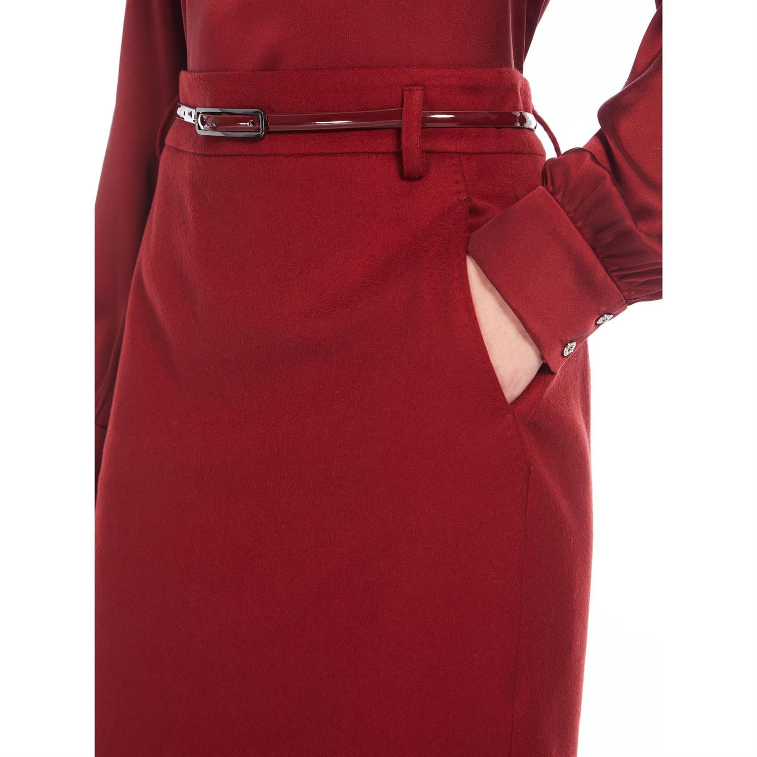 Midi-skjørt i ren ull, blyant-snitt, fôret, med skrå lommer på sidene og splitt bak.
