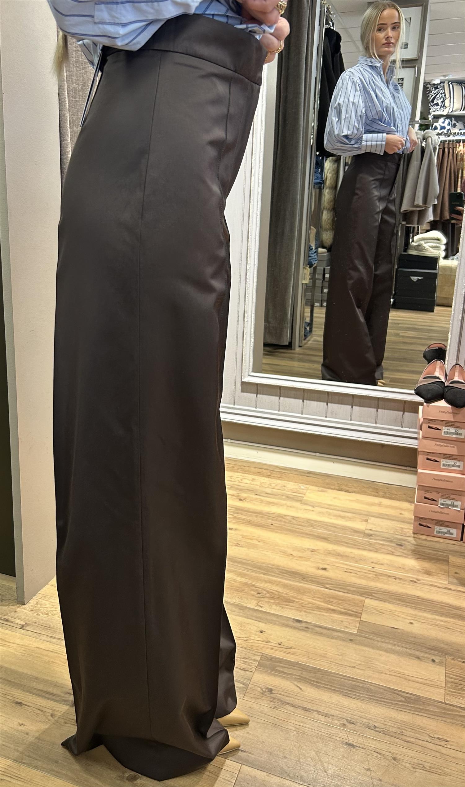 En helt fantastisk bukse med helt rette ben, høy i livet, sydd press, stikk lommer og ekstra lange ben.