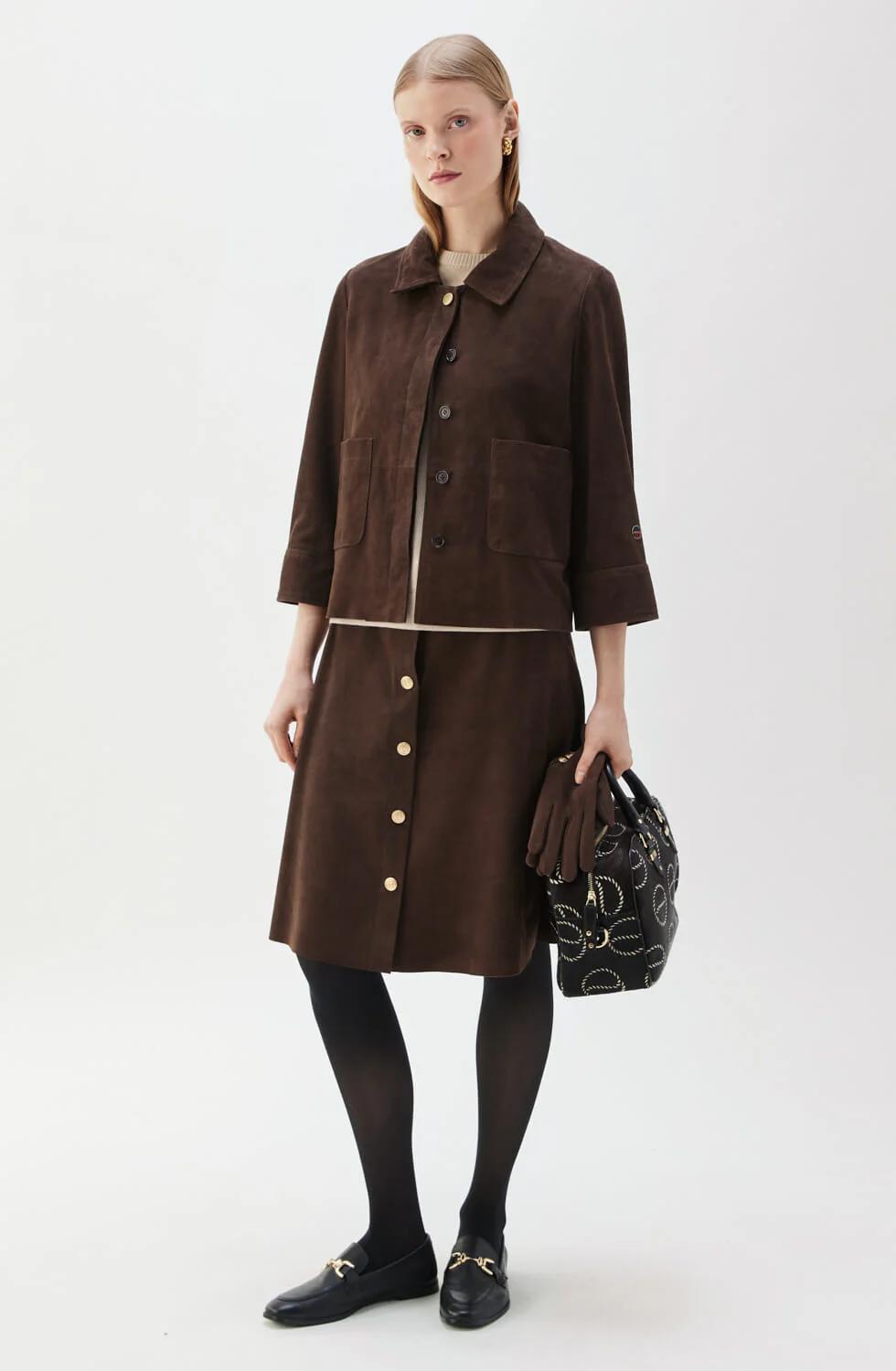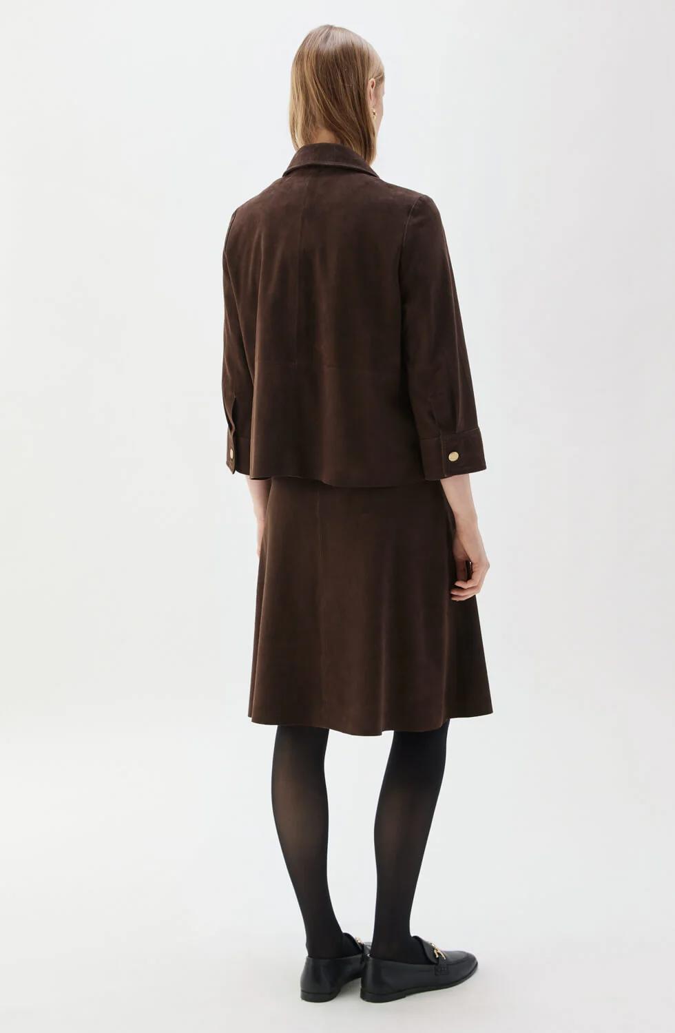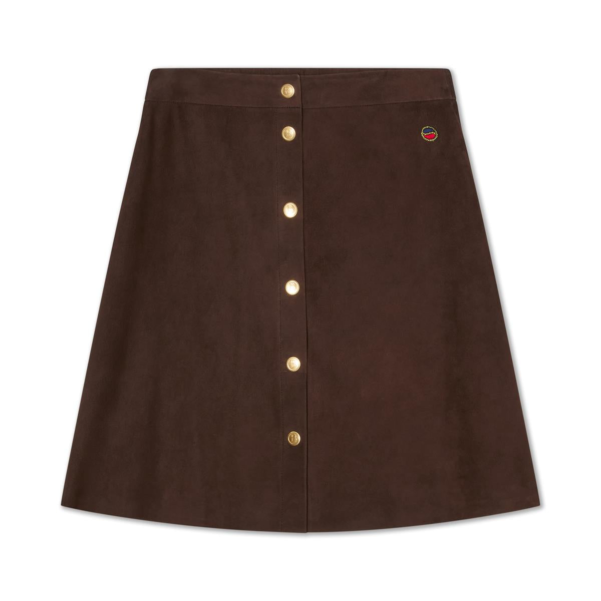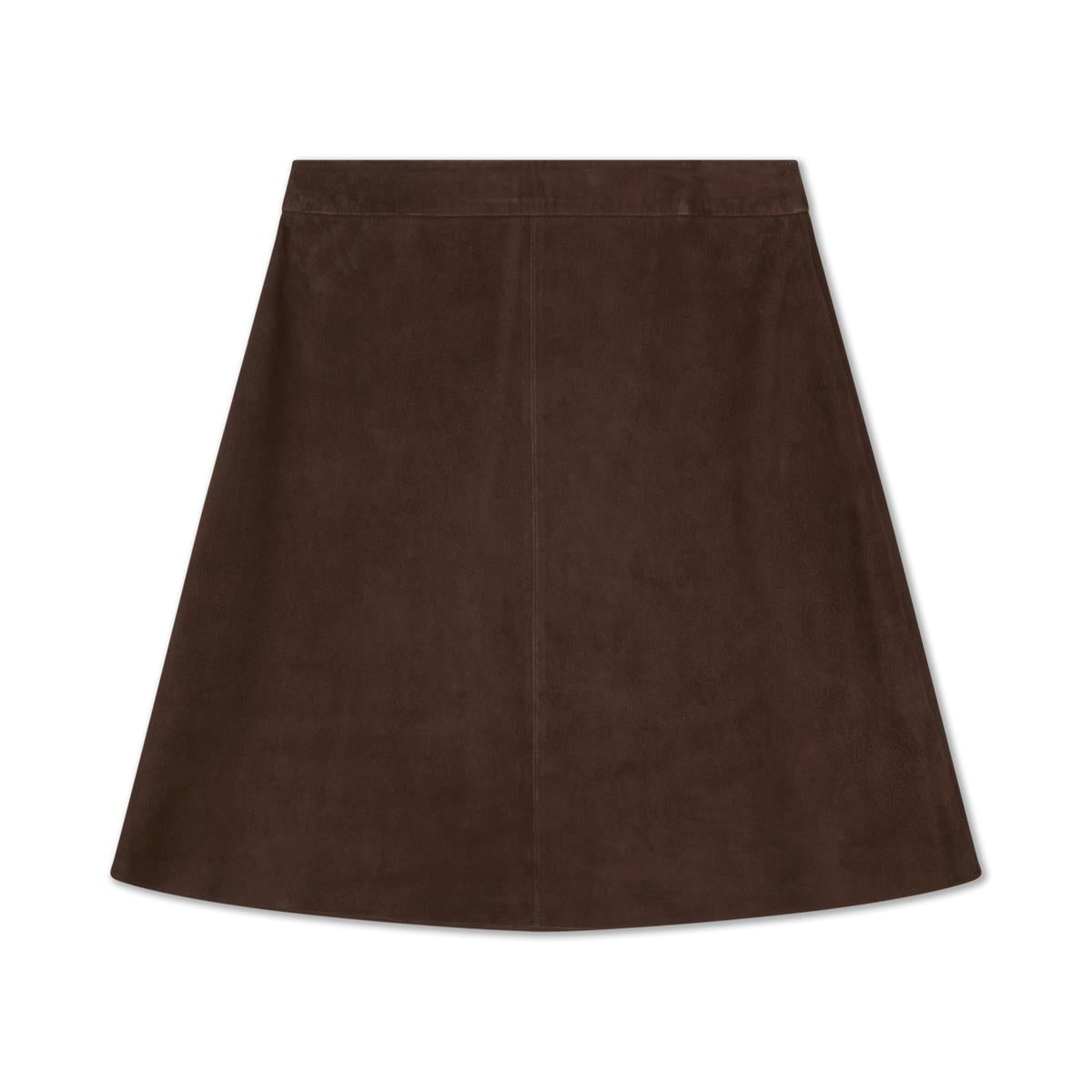 Alianne Suede Skirt er laget av luksuriøst, supermykt semsket skinn og har en flatterende A-linjeformet silhuett som sitter høyt i midjen. De gulltonede trykknappene foran gir et raffinert preg, noe som gjør dette skjørtet til et allsidig plagg du vil kombinere med alt fra en flagrende bluse til en grov strikket genser.