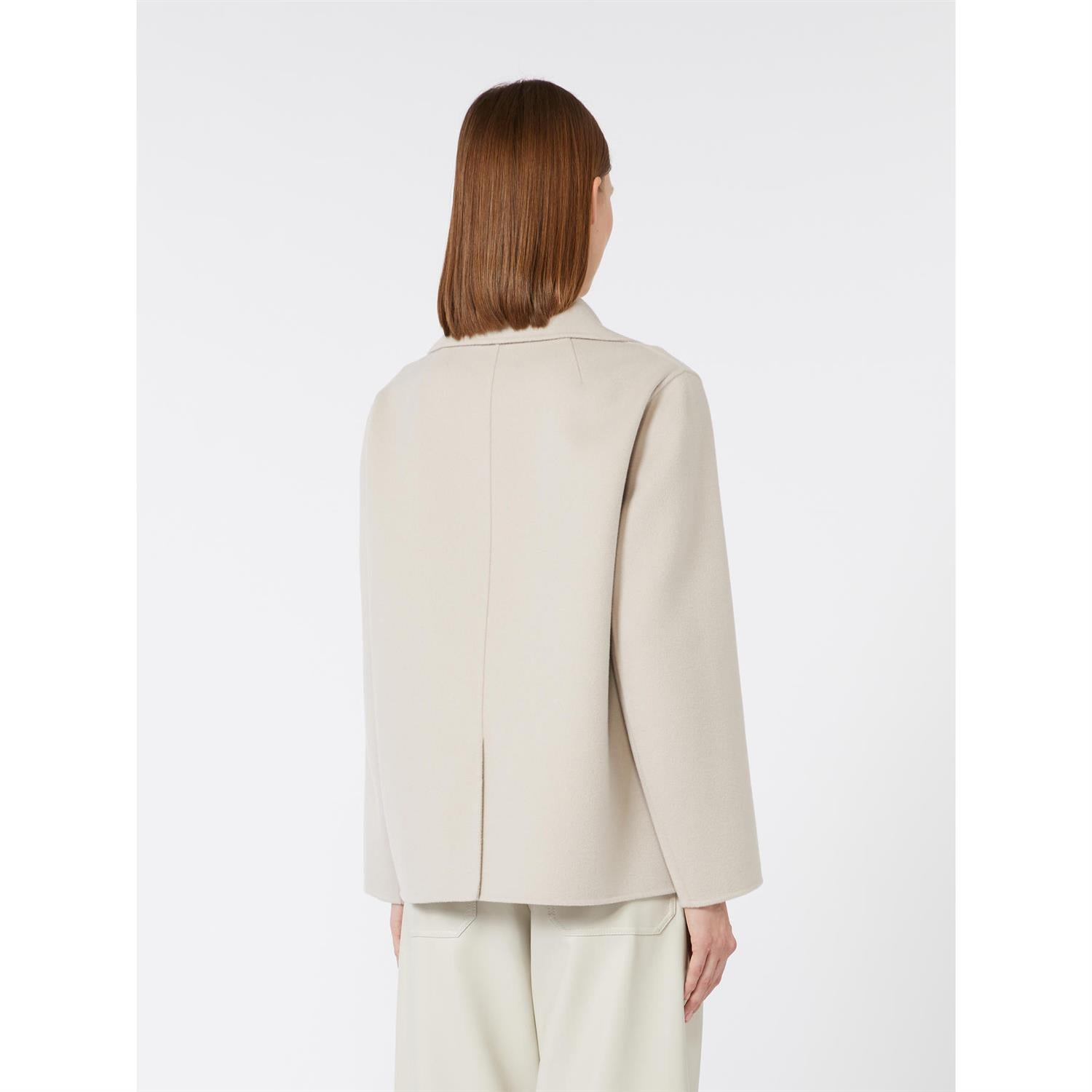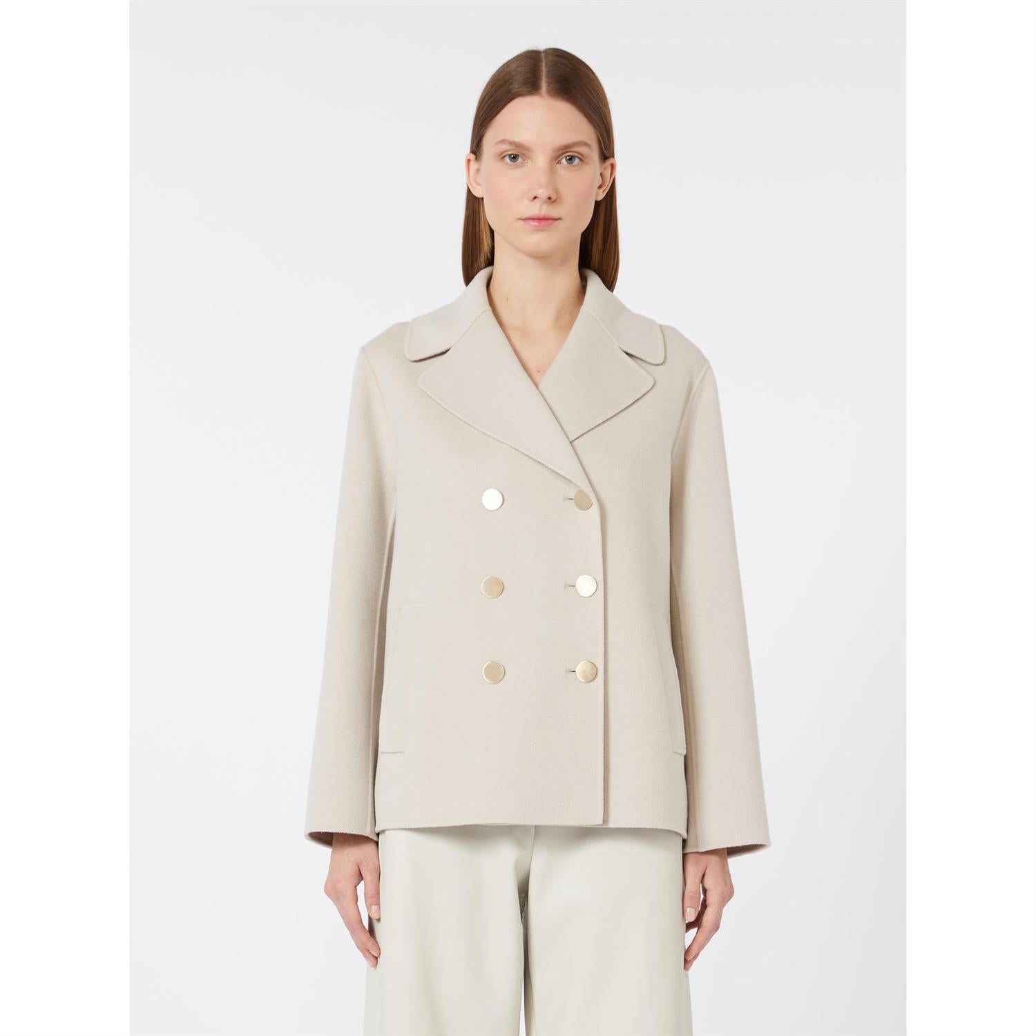 Kort jakke med to stikk lommer og en liten splitt i ryggen. Store gullfarget knapper.