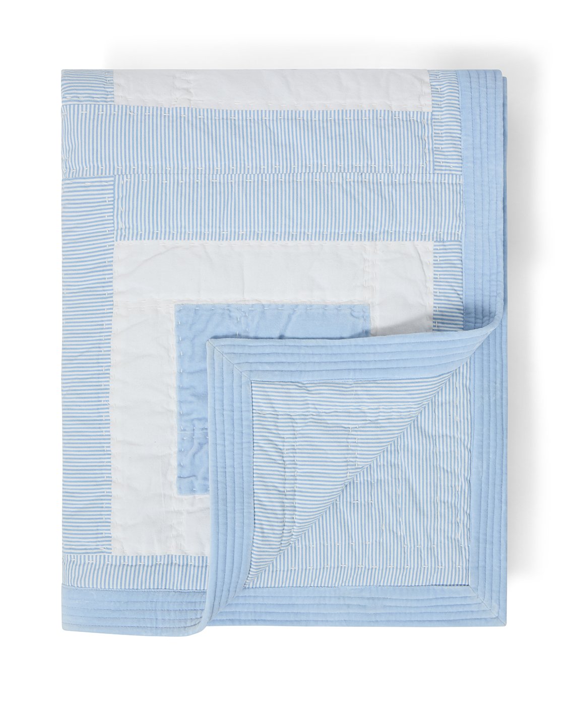 Lexington Home Quiltet patchwork sengeteppe i økologisk bomull Blå/hvit 160x240cm