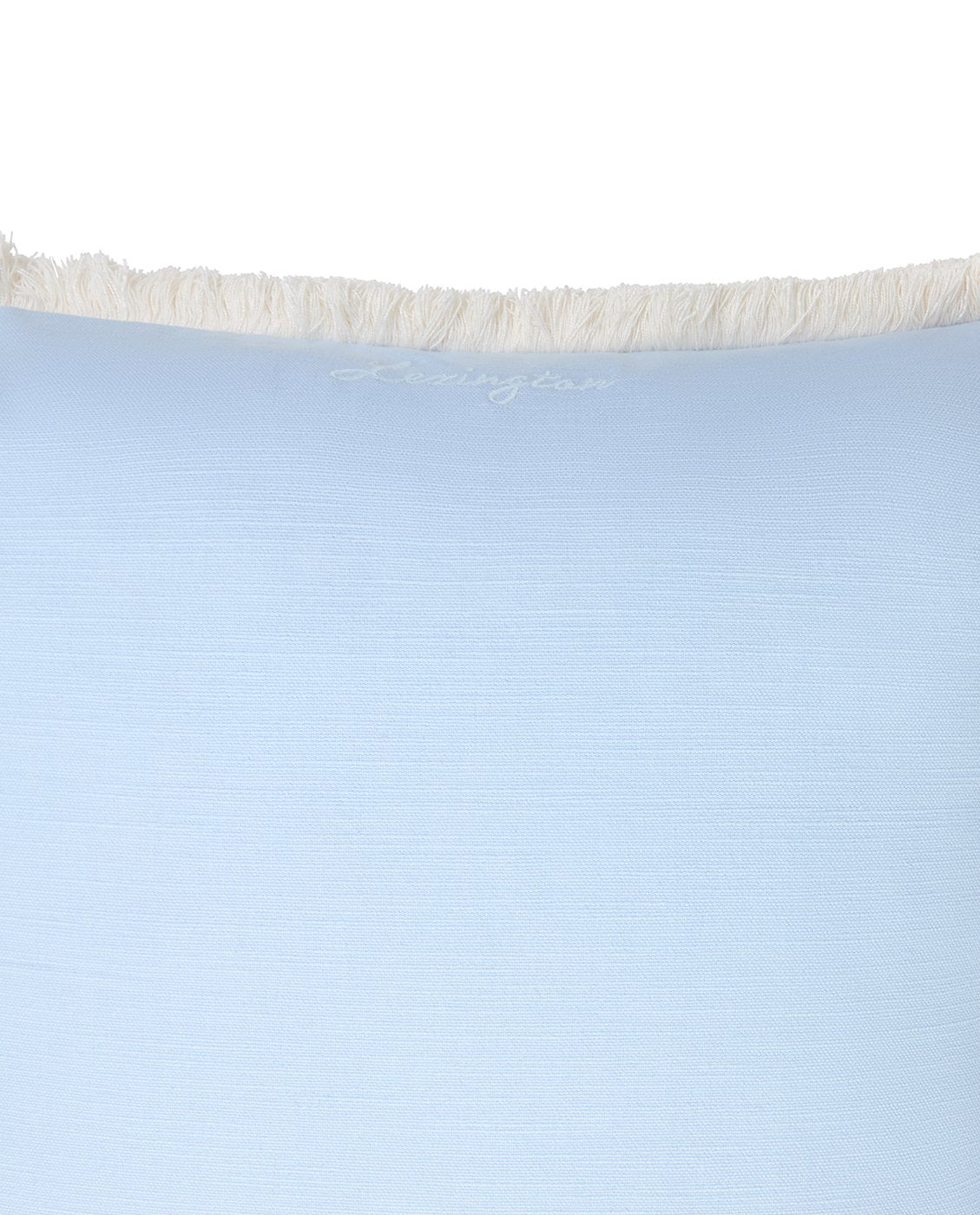 Dette elegante putetrekket i en myk lin/bomull-blanding har en fin hvit bomullsfrynse rundt hele, som tilfører et snev av uformell eleganse til hjemmet ditt. Den broderte tonale tekstlogoen på midten øverst bak og den vevde Lexington logo-merken viser merkets signaturdetaljer. En skjult fargetilpasset glidelås nederst bak sikrer et sømløst utseende. Produsert i en sertifisert grønn fabrikk og Oeko-tex-sertifisert for kvalitet og bærekraft.