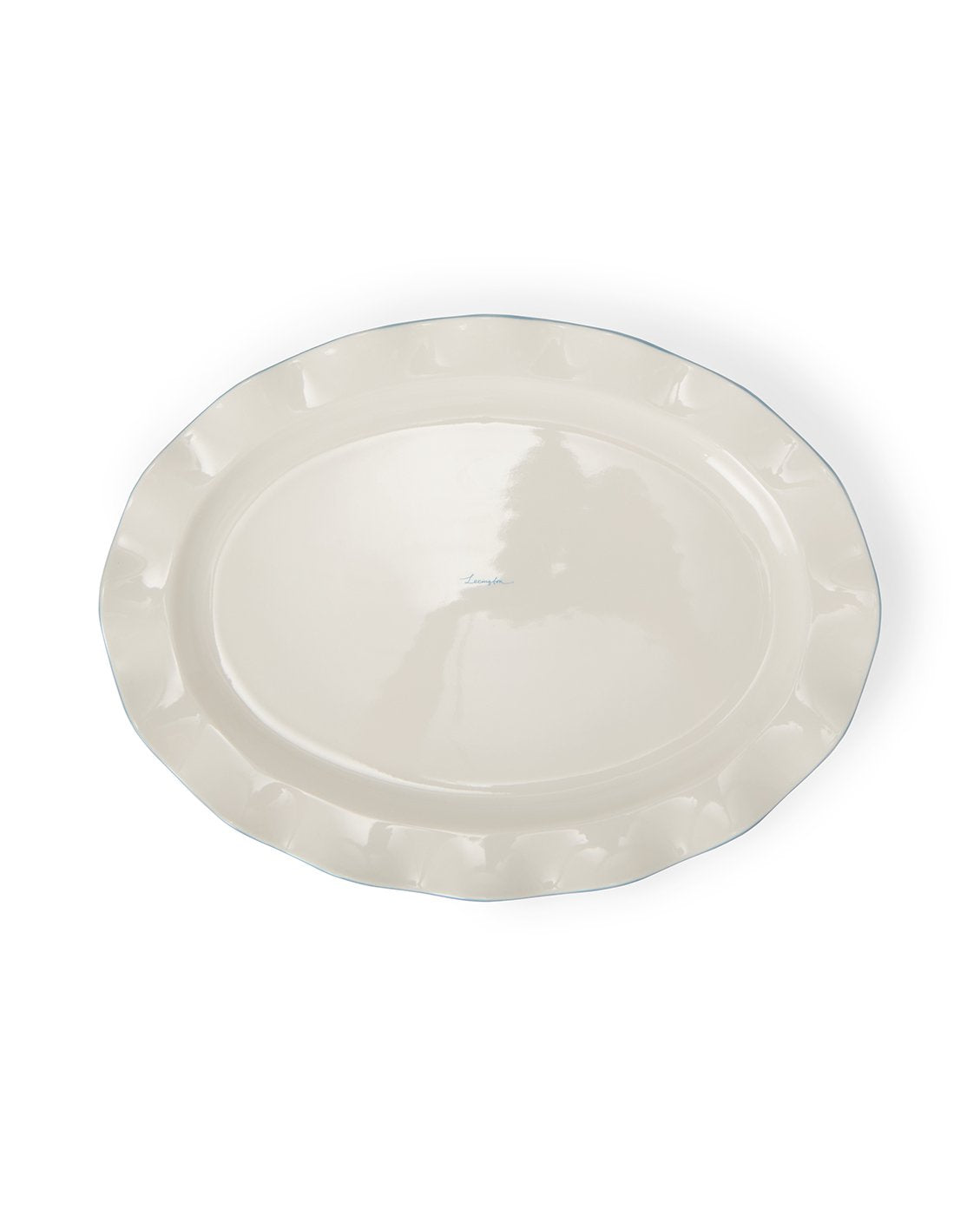 Lexington Home Bølget oval tallerken i steintøy Hvit/blå