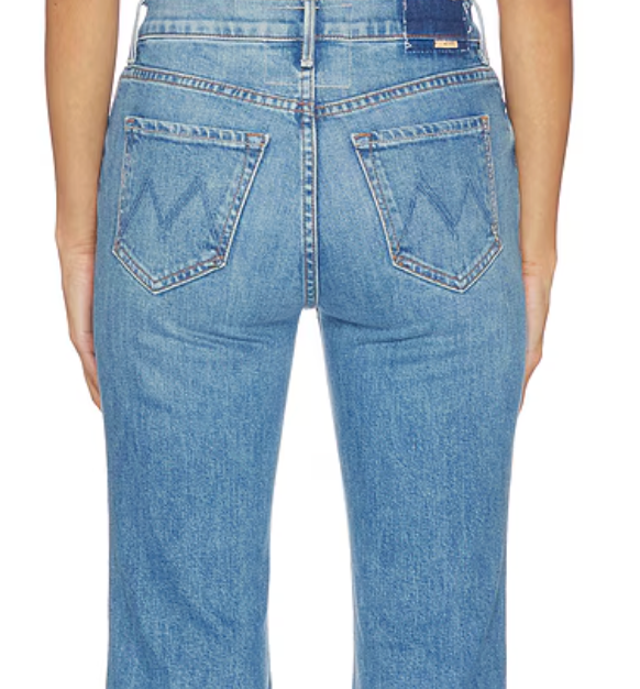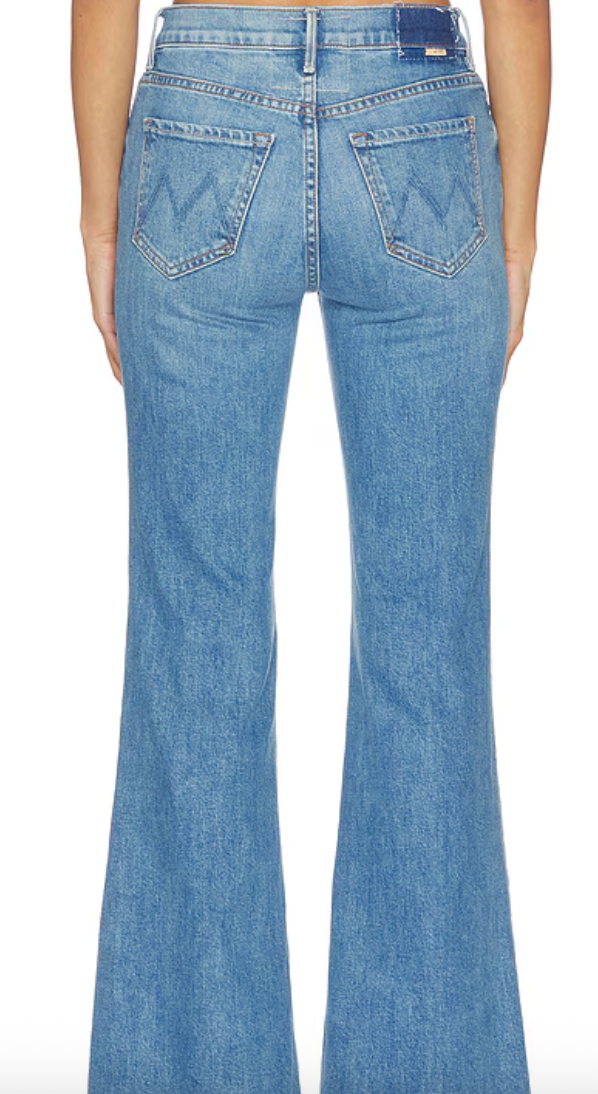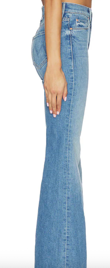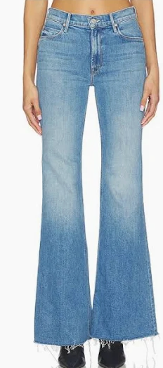 Mother jeans med lys vask, boot cut og frynset nederst på ben kanten.