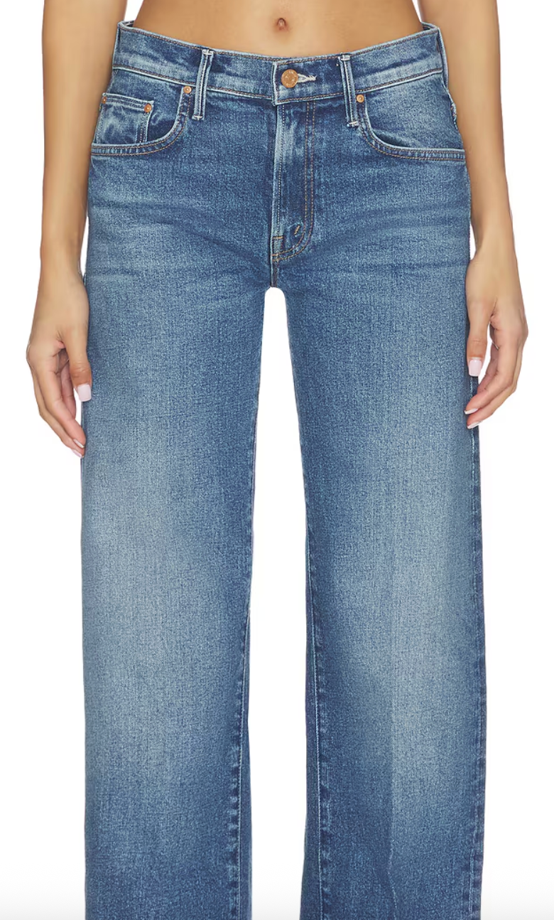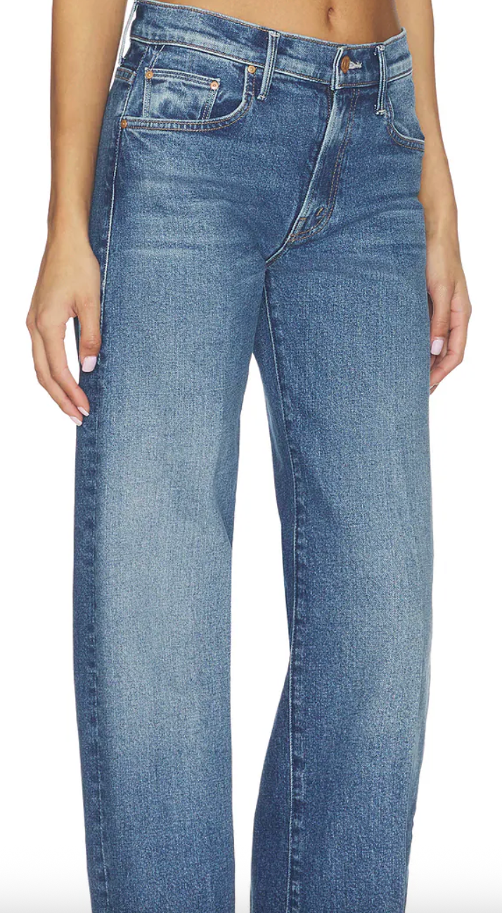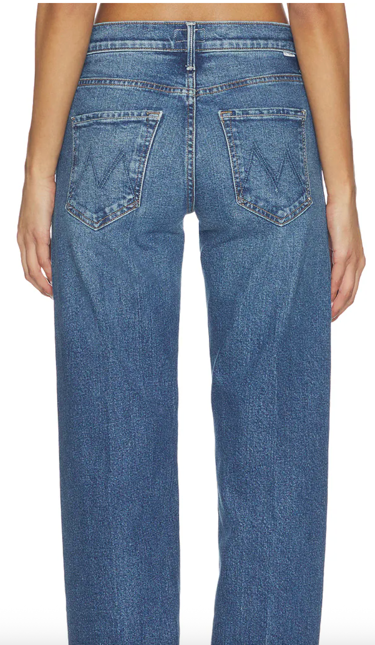 Mother jeans med lys vask, rette ben, høy på livet og lang ben-lengde.