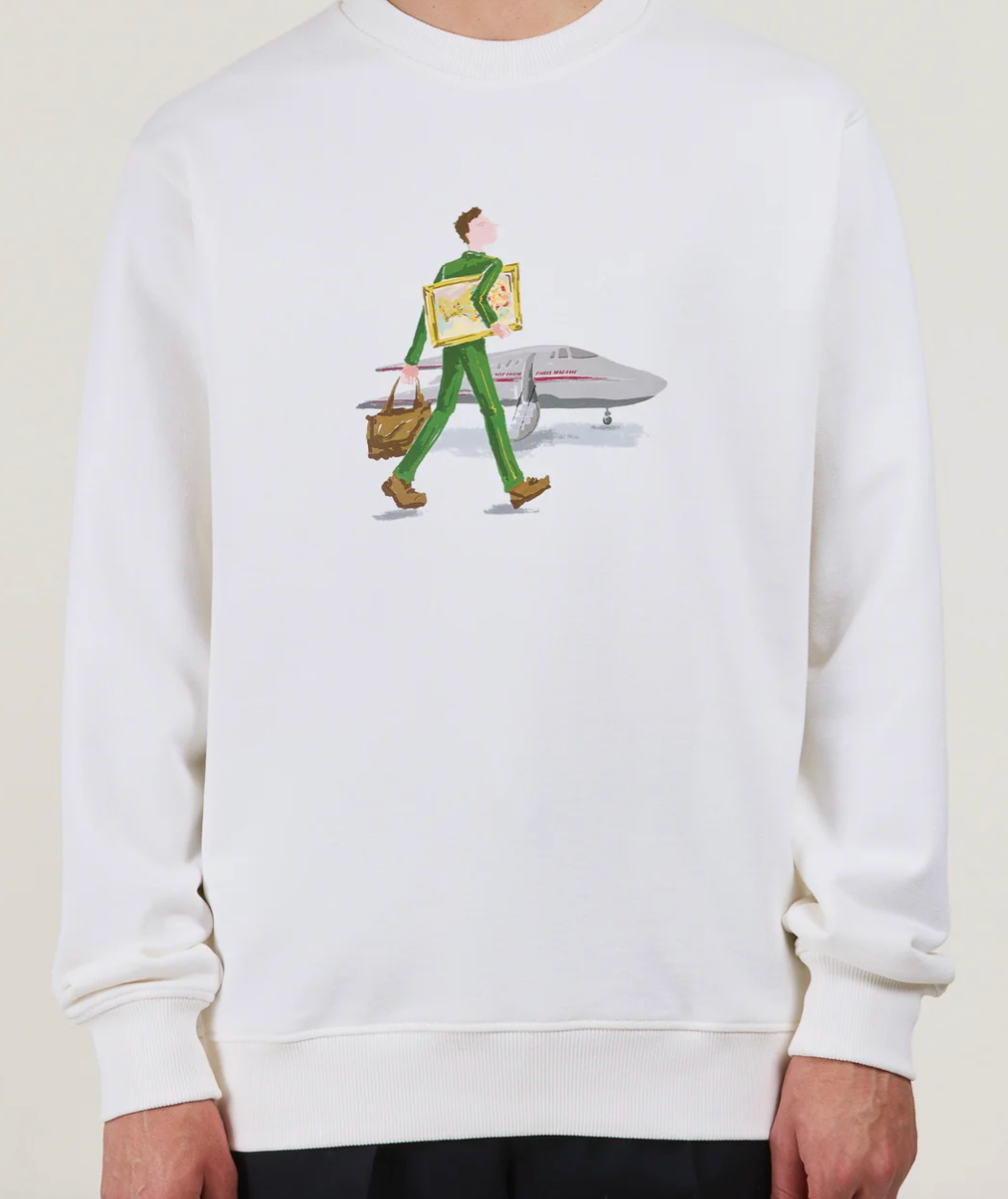Denne off-white genseren i 100 % bomull i fransk frotté har ribbestrikket hals. Den har L'Homme au tableau-trykk foran.
