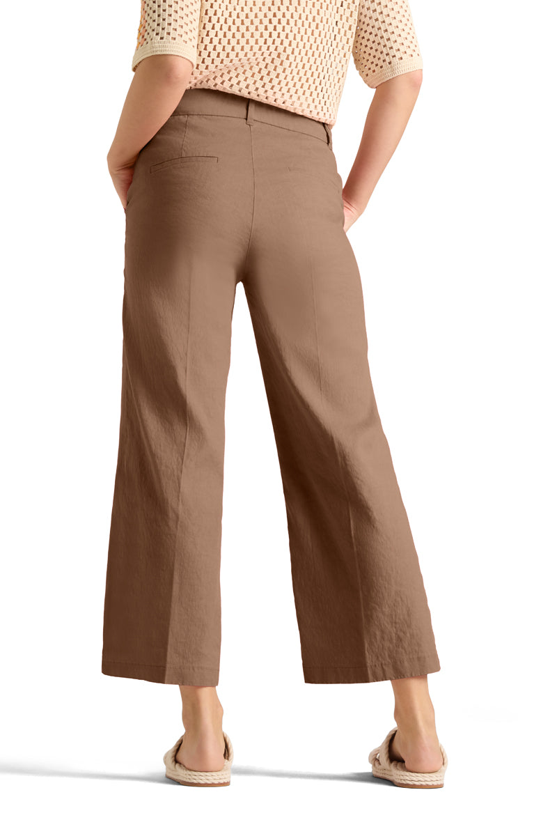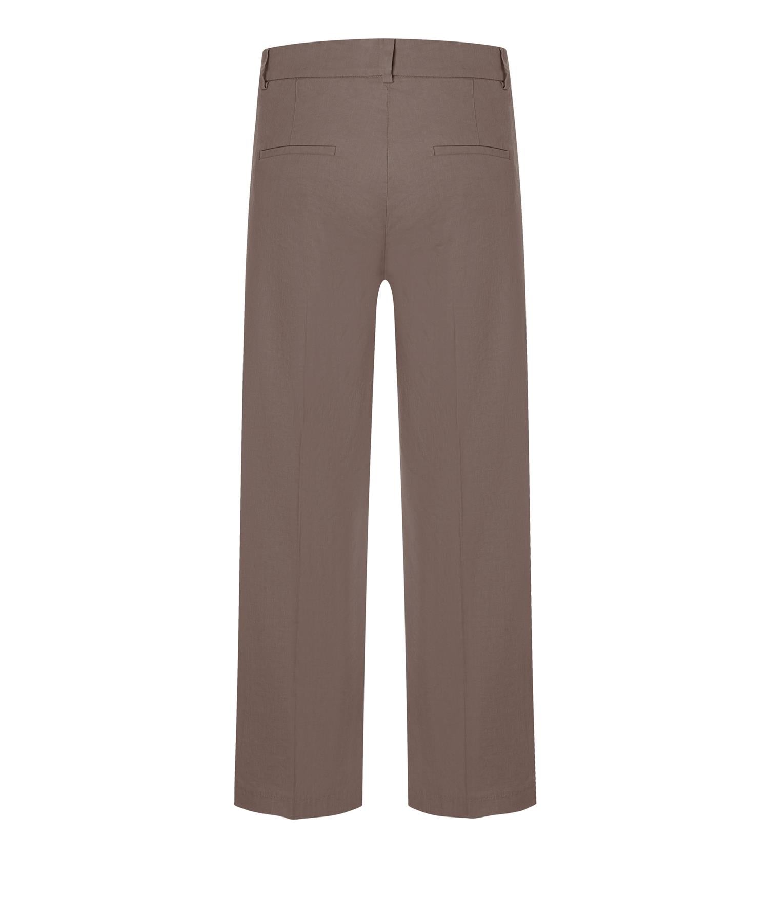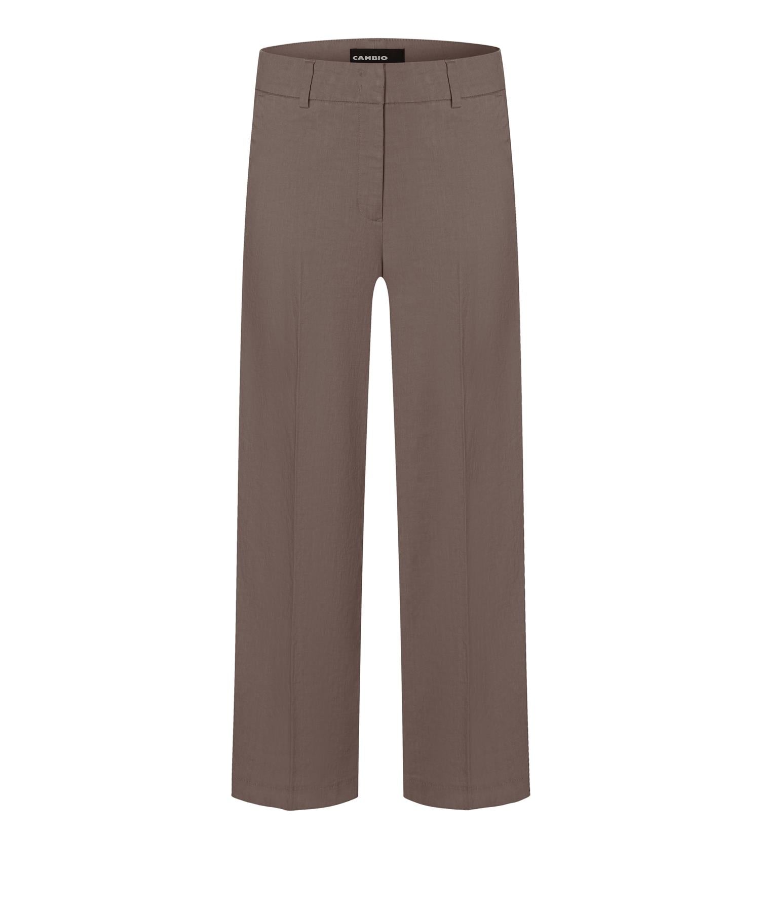 California fra Cambio er en bukse i en lett bomullskvalitet med stretch som gir et rent og avslappet uttrykk. Den har en moderne silhuett med vid passform og et fint fall.