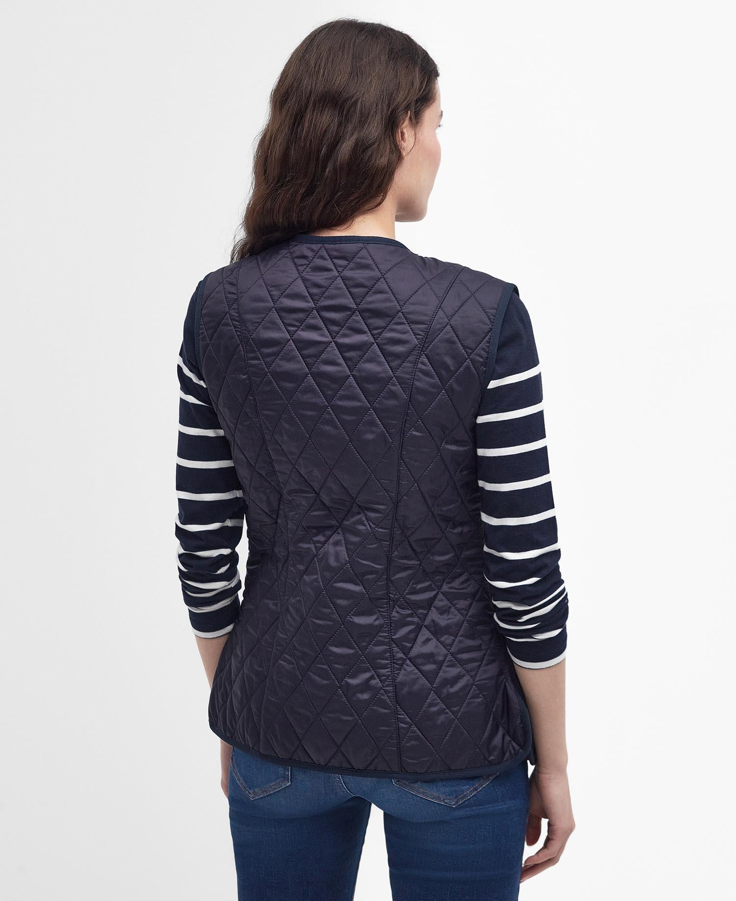 Polyamid vest med lomme på innsiden m glidelås. Denne oppdaterte versjonen tilbyr det samme problemfrie utseendet og tidløse stilen som den originale Barbour Betty Liner, men har et koselig fleecefôr for ekstra varme. Dype påsydde lommer er ideelle for å holde hendene varme og nødvendige ting lett tilgjengelig, mens grosgrain-kant og kontrasterende Barbour-broderi forsterker det eksklusive utseendet.